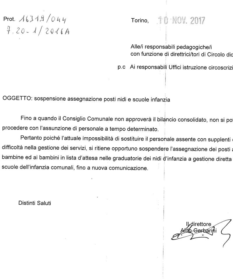 La mancata approvazione del bilancio consolidato entro la data stabilita ha una conseguenza gravissima: l’inadempimento sta bloccando da mesi il funzionamento del Comune. Infatti, la sanzione è l’impossibilità ad assumere personale a qualsiasi titolo, compresi i supplenti nelle scuole. E sta montando, attraverso i sociali, la protesta di insegnanti e genitori per le gravi carenze di servizio. Non è sufficiente che, a “calmare” il mondo dei genitori, la Appendino abbia assoldato come assessora proprio la ex factotum del coordinamento genitori. Non sempre cooptare il dissenso organizzato garantisce un tregua forzata.