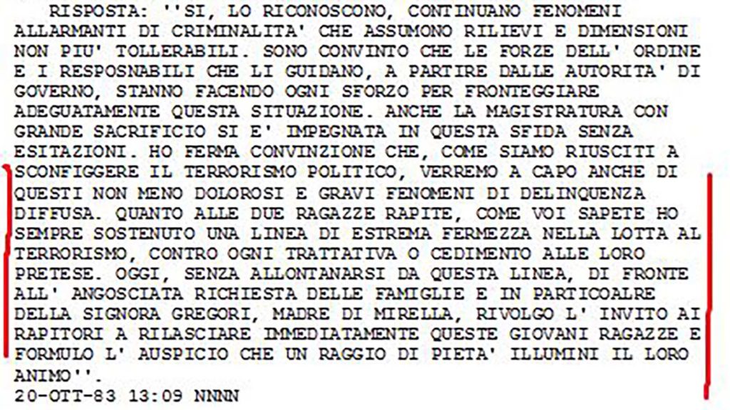 Sandro Pertini, il presidente-partigiano amatissimo dagli italiani, quel maledetto 1983 era quasi alla fine del suo mandato. Seguì la vicenda delle quindicenni sparite con trasporto e dolore. E, fin da subito, tramite contatti riservatissimi, venne a conoscenza della portata politica internazionale del sequestro Orlandi-Gregori al punto che, con una delicata trattativa realizzata attraverso un “dialogo” … Leggi tutto Caso Orlandi-Gregori, Sandro Pertini sapeva e temeva il peggio: ecco i documenti