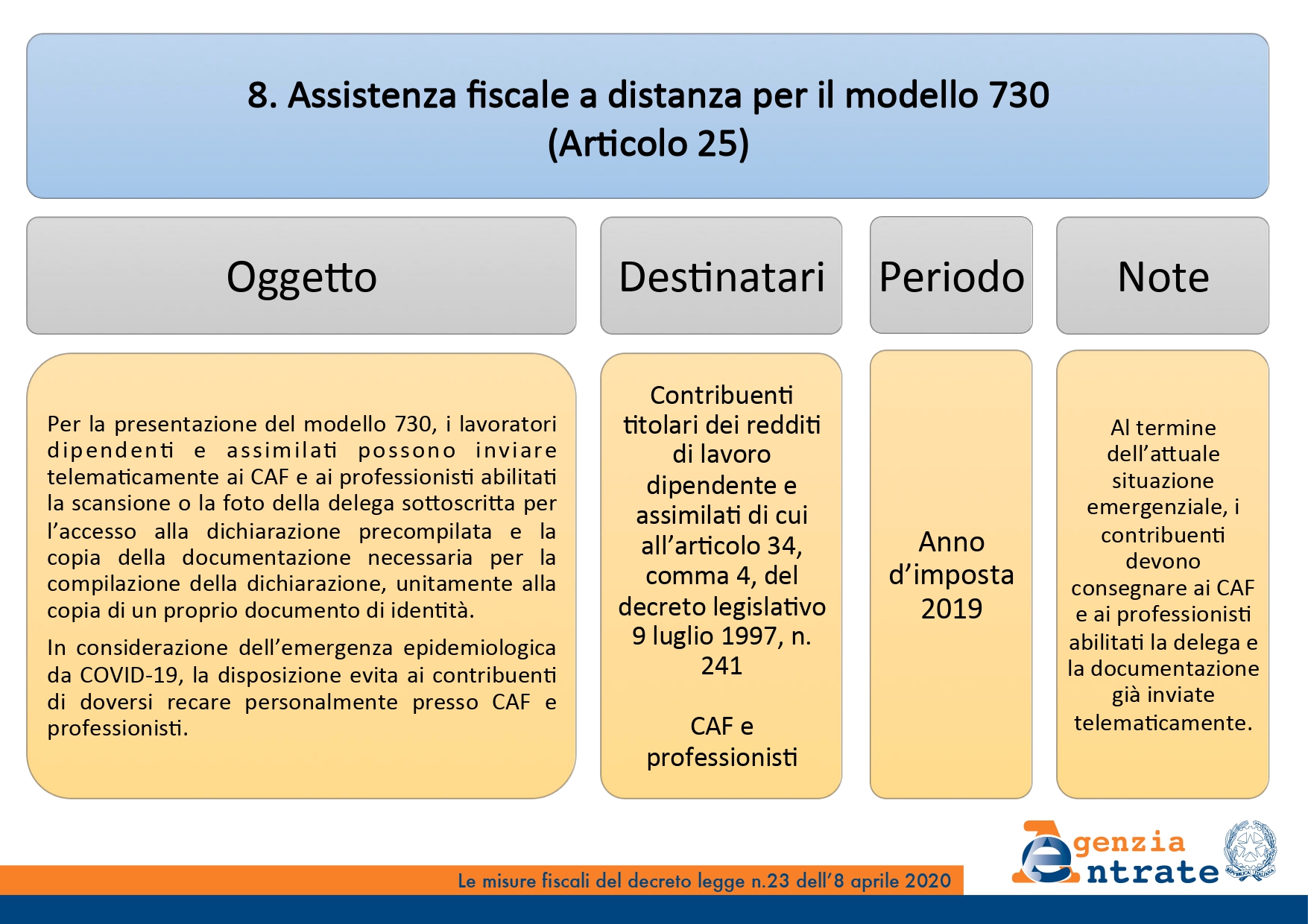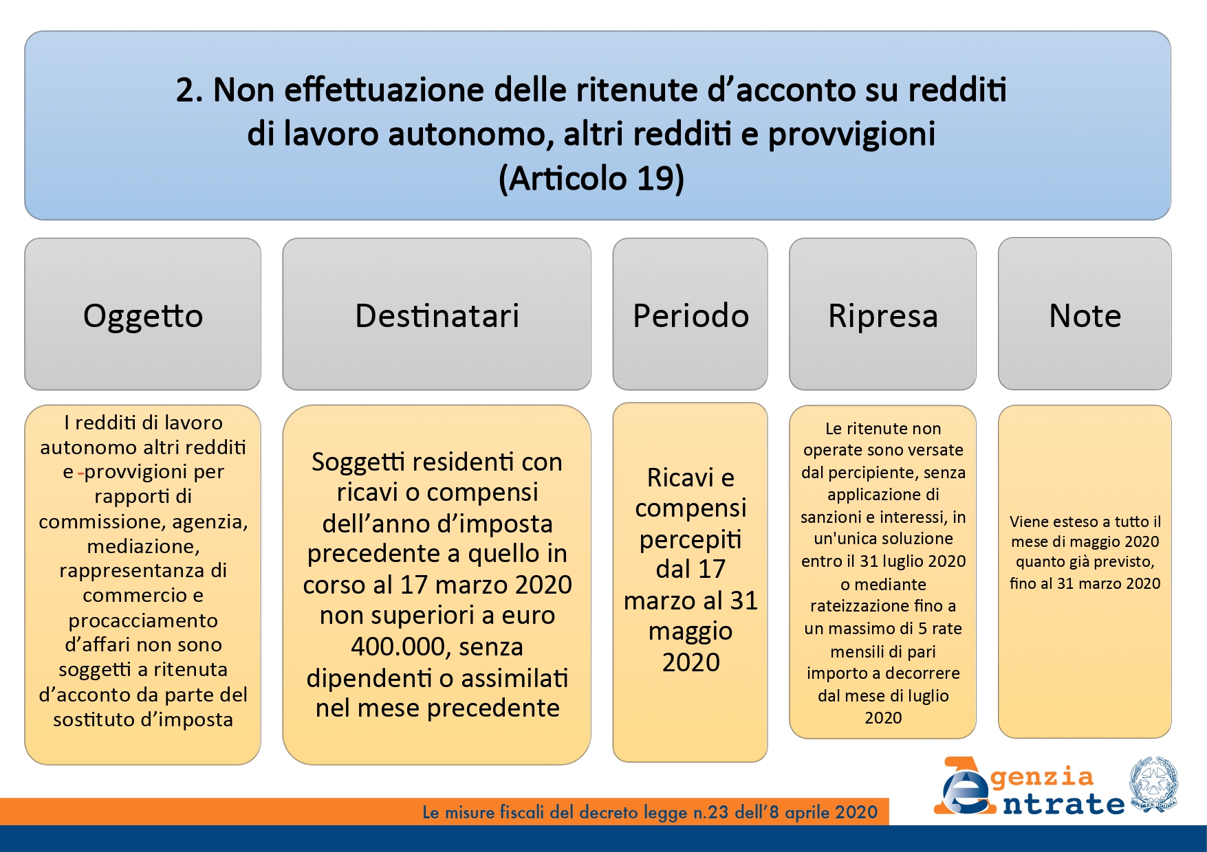 Ecco qui lo schema a cura di Agenzia delle Entrate