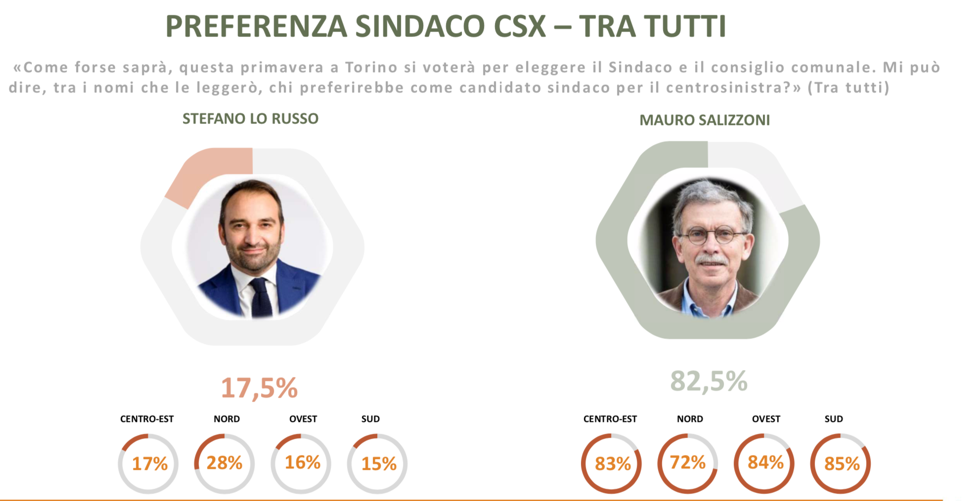 Il chirurgo che ha fatto il suo esordio in politica durante le elezioni regionali del 2019 è anche il candidato ideale del centrosinistra secondo gli intervistati. L’82,5 per cento lo preferirebbe a Stefano Lo Russo, votato solo dal 17, 5 per cento.