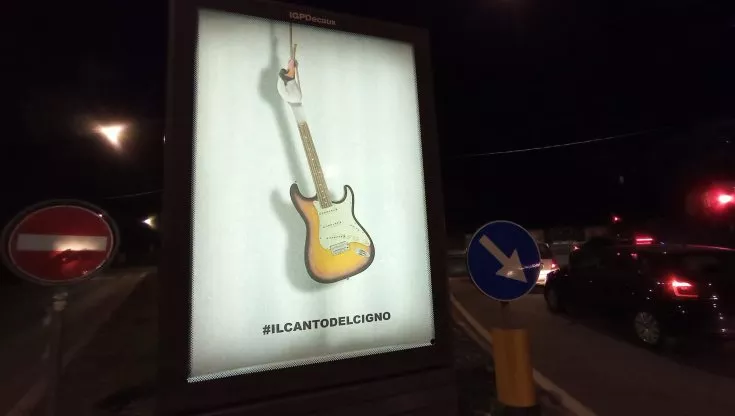 Alla crisi del mondo della musica e dell’intrattenimento dovuta alla pandemia è dedicato la nuova opera di Andrea Villa, il Banksy torinese, che la notte scorsa ha affisso in diverse parti di Torino una serie di manifesti con l’immagine di una chitarra con il manico trasformato in testa di uccello per ‘celebrare’ il “canto del cigno” della musica. “Con il manifesto #ilcantodelcigno – spiega lo street artist – ho voluto porre l’attenzione sulla scena musicale italiana: mentre il Festival di Sanremo apre con pubblico dal vivo e piena capienza, le discoteche e i locali di musica sono ancora chiusi. Può il mero guadagno sotterrare le realtà underground, il mondo musicale e il precariato che lavora nel mondo dell’intrattenimento?”. ” Perche’ – si chiede Villa – il mondo dei locali musicali è visto spesso solo come fonte di disturbo e non come possibili motrici socio-culturali? Vedi Murazzi a Torino. Speriamo che questo non sia veramente un canto del cigno”. I manifesti sono stati affissi davanti al Conservatorio, in corso Massimo d’Azeglio, corso San Maurizio e corso Sicilia.