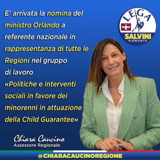 L’assessora al welfare della Regione Piemonte Chiara Caucino è stata nominata referente per le Regioni italiane nel nuovo gruppo di lavoro nazionale sul tema dei diritti dei bambini e della tutela dei minori. Un progetto che punta a definire delle politiche improntate alla promozione dei diritti dei bambini e dei più giovani e che sarà guidato dalla senatrice Anna Maria Serafini.