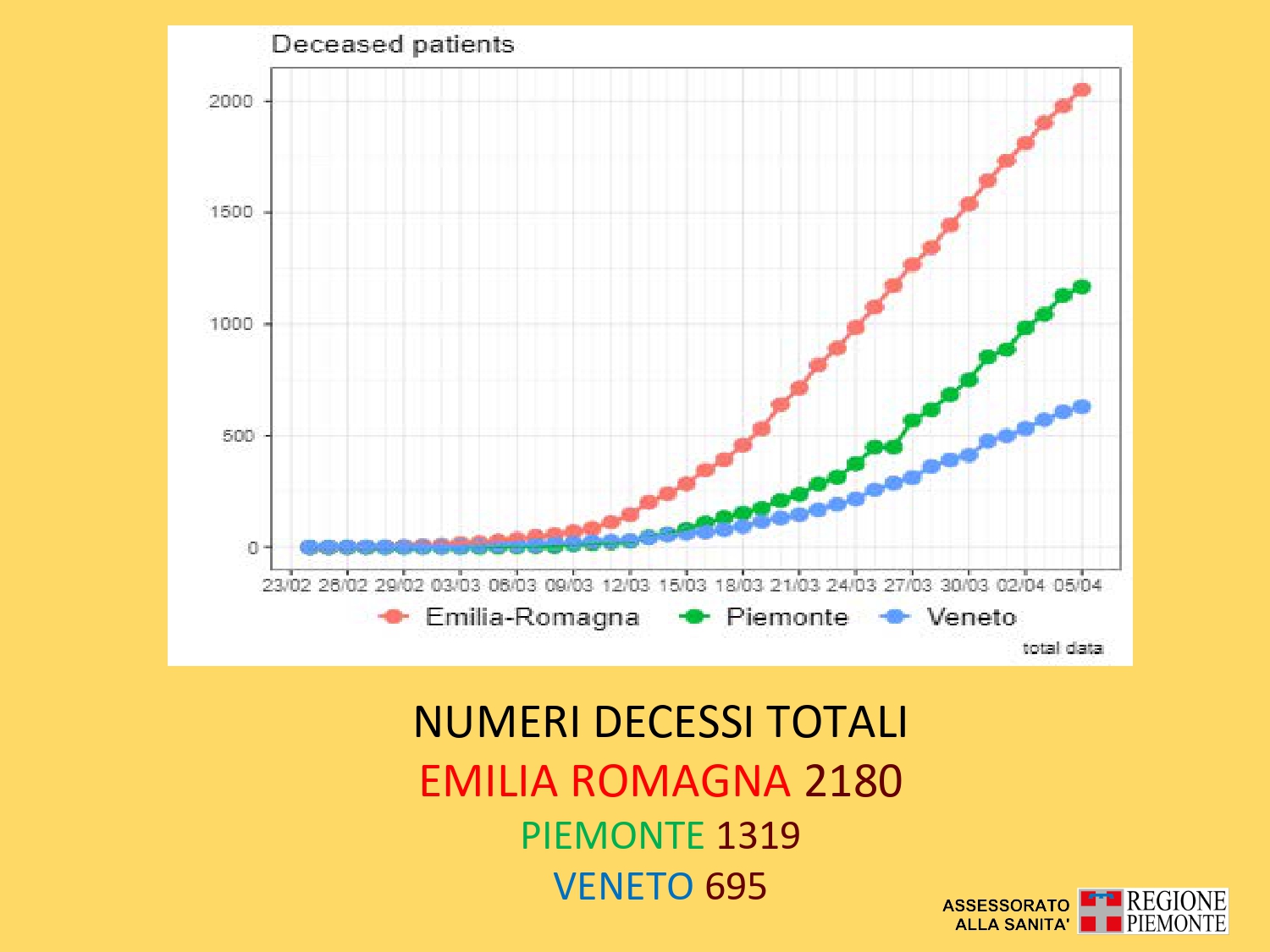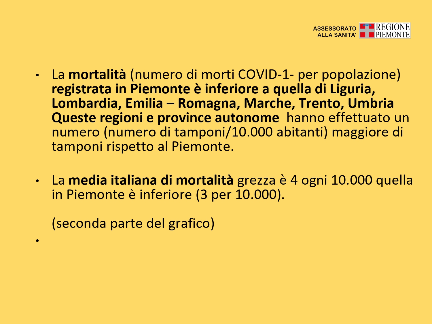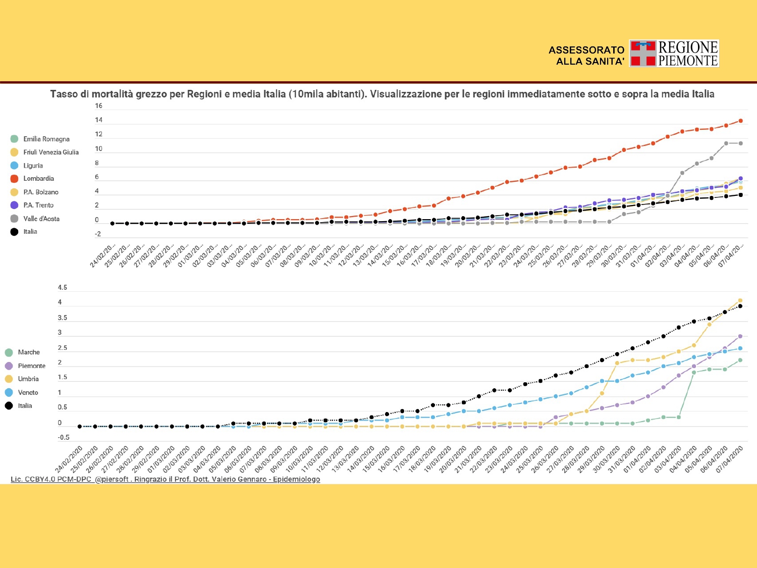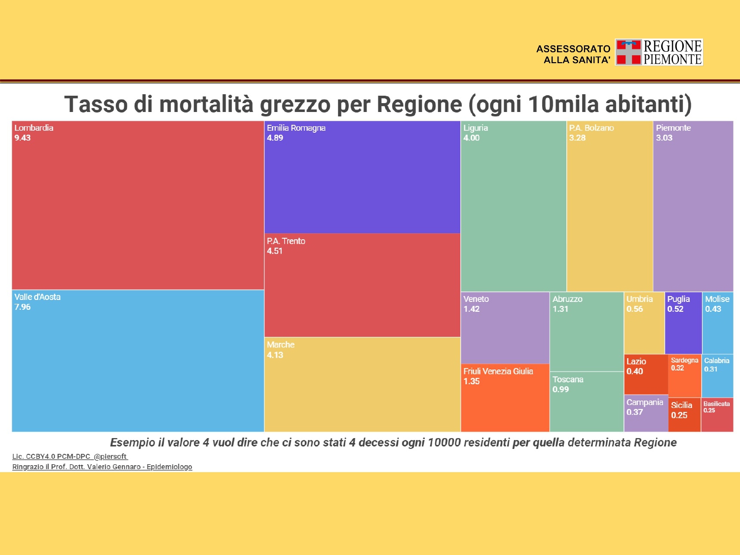 “Il Piemonte per numero di decessi è sotto la media nazionale: 3,3 ogni 10 mila abitanti, inferiore a quella di Liguria, Emilia Romagna, Marche, Lombardia, Trentino, e Umbria. I dati che ho visto non corrispondono al vero. Sono un po’ amareggiato, prendere dei dati e fare conclusioni da bar rischia di fare danni e dare un’immagine della Regione che non è corretta”.