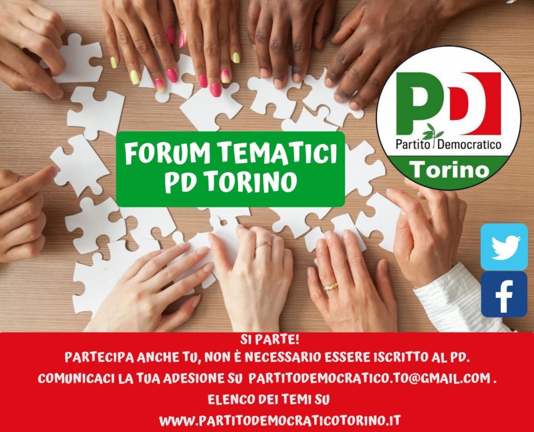 Partono i forum. Il lavoro portato avanti e l’esperienza acquisita durante Festa de L’Unità Di Torino, si sta concretizzando. La Segreteria Metropolitana del PD ha dato il via ai Forum tematici. Responsabili dei Forum saranno i militanti che si sono fatti promotori delle ultime iniziative e i referenti per temi della Segreteria Metropolitana. “Non saranno riservati ai soli iscritti del PD, ma dovranno essere aperti a tutte le realtà che inizialmente sono state coinvolte alla Festa de L’Unità. Inizia il confronto con i cittadini, le Imprese, le Associazioni di Categoria, Sindacati e tutto il mondo produttivo che ci accompagnerà verso il 2021- spiegano Mimmo Carretta e Saverio Mazza, Segretario e Responsabile Organizzazione del PD Torino- un form di iscrizione per i cittadini sarà sempre presente sul sito www.partitodemocraticotorino.it ”.